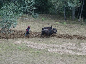 ploughing with 2 waterbuffaloes