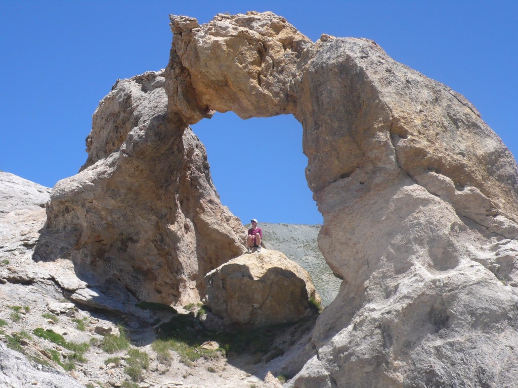3. Naar Refuge de Lac de Vens : (laat je met de auto brengen of liften van St Dalmas naar de start van het pad naar Lac de Vens op de D64 of is ongeveer een 2 km op de D64 wandelen). Neem zeker de hoger gelegen variant naar Refuge de Vens, via de natuurlijke stenen boog: Arc de la Tortisse (zie foto hoger)